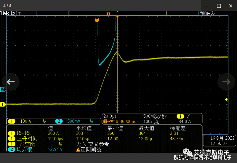 并机后上升速度可达30A/us,0~320A 最快可达12us