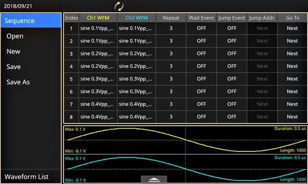 波形序列选项可以对复杂的长波形编程,支持最多 256 步