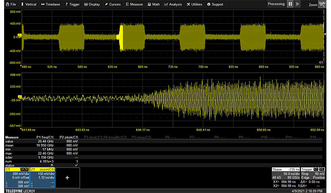 SSA5000A标配了脉冲发生器功能,最小脉宽20ns,可应用于雷达系统测试等领域。可选配脉冲调制,通断比典型值>80 dBc。选配的脉冲串发生器功能,可模拟复杂的脉冲场景,脉冲数为1-2047。
